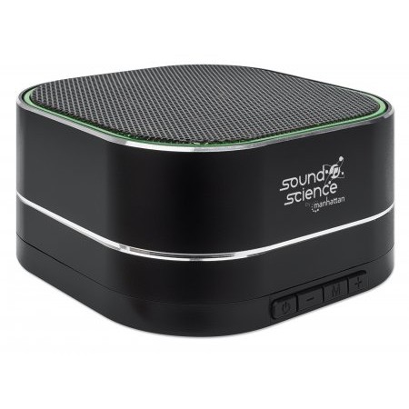 MANHATTAN Sound Science Metallic LED Bluetooth Speaker Bluetooth 5.0 Microphone Controls FM Radio MicroSD Slot Black